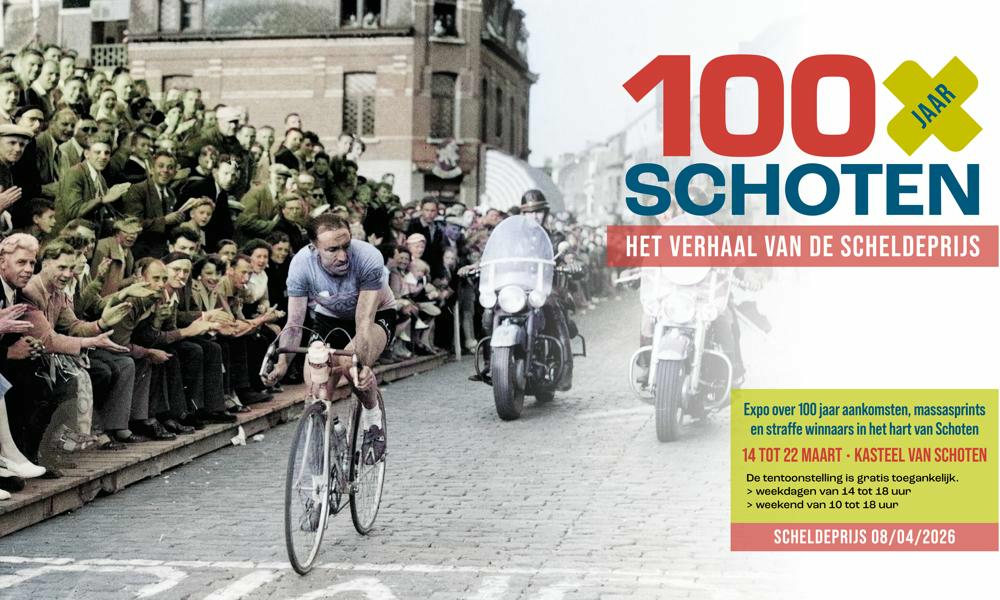 Op woensdag 8 april vieren we 100 jaar aankomst van de Scheldeprijs in Schoten. In het kader van dat jubileum opent de organisatie een unieke expo over een eeuw Schotense wielergeschiedenis.