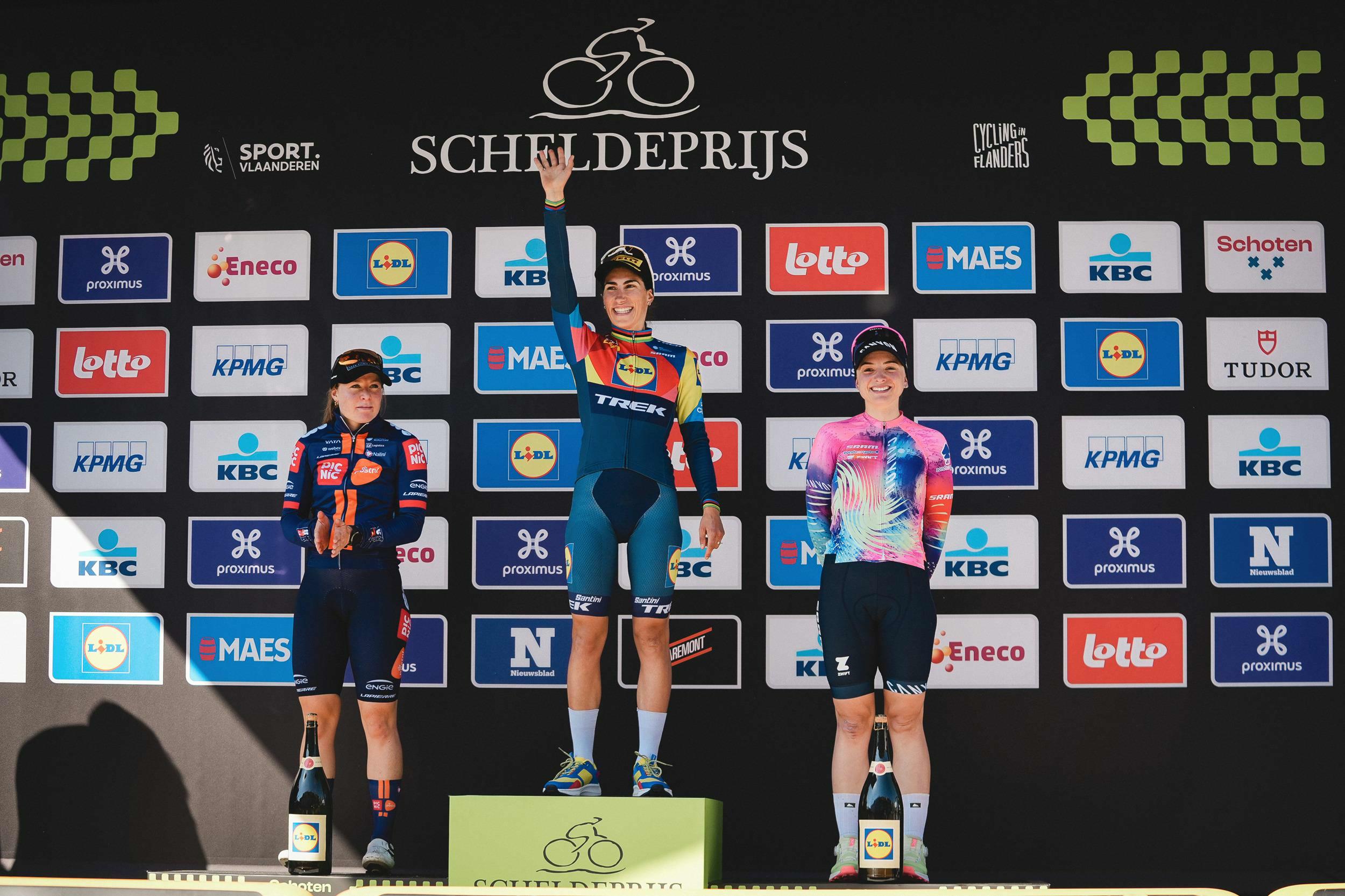 Charlotte Kool toonde zich op de Churchilllaan de snelste van het peloton. De Nederlandse rondde het werk van haar ploeg perfect af en voegde zo na drie opeenvolgende tweede plaatsen haar naam toe aan de erelijst van de Scheldeprijs. Nienke Veenhoven en Elisa Balsamo vervolledigden het podium.